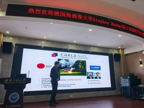 本网讯(通讯员 李和怡 程然 刘莉君)10月14日,应我校邀请,海德堡大学Stephen Hashmi院士访问我校,并在大化工楼610报告厅与学校师生进行学术交流,报告会由化环学院董志兵教授主持。