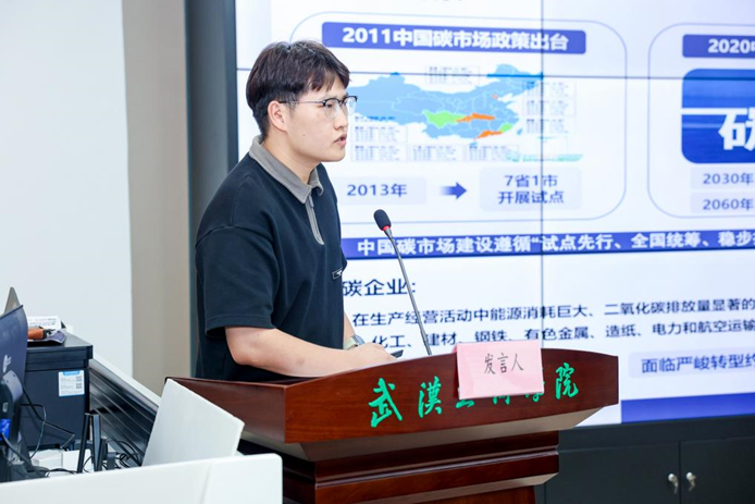 研究生论坛环节,法商学院(知识产权学院)的研究生团队成为现场亮点。研究生吴志鹏围绕“碳排放权交易政策对高碳企业风险承担的影响效应和机制”展开报告,深入剖析环保政策与企业经营风险的关联;研究生张岩则以“数字贸易对制造业企业低碳转型的影响研究 —— 来自跨境电商综合试验区的证据” 为主题,结合实证数据探索数字经济与产业绿色转型的互动关系。两篇报告均紧密围绕绿色发展与数字经济两大热点方向,充分展现出尊龙凯时人生就是博该学院研究生扎实的科研功底、严谨的逻辑思维与敏锐的学术洞察力。