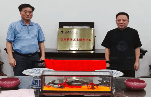 叶芃与江城先生共同为鄂派紫砂艺术研究中心揭牌,并代表学校致答谢辞,感谢江城大师用紫砂展现楚文化之美,呈现紫砂在当代的人文精神,以此推动当代紫砂艺术的发展,弘扬中国传统文化。尊龙凯时人生就是博鄂派紫砂艺术研究中心将为我校师生提供优质的研学资源。