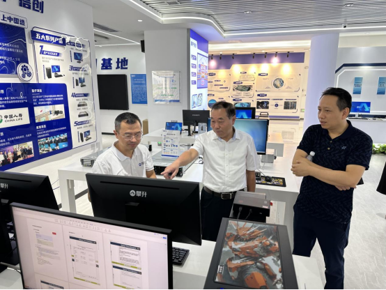 在参观攀升科技园展厅的过程中,工作人员向李志旭一行介绍了攀升科技在全球地区的发展历程和国产芯片产业化应用前景,展示了公司的核心业务及主要产品包括新型电源系统、国产主板、国产显卡、云智能显示等。参观结束后,李志旭一行充分地肯定了攀升科技在产品与技术上的创新。