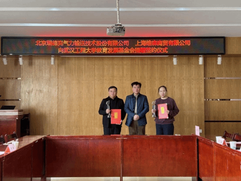本网讯(通讯员 蔡超)12月21日上午,北京瑞德克气力输送技术股份有限公司、上海维森商贸有限公司两家企业联合向学校捐赠200万元用于学校绿色化工装备智能制造产学研基地和机电学院学科建设项目,签约仪式在机电工程学院会议室进行。优秀校友胡伟波先生、杨军先生和爱心企业代表邓虹女士来校出席仪式,学校正校级干部、教育发展基金会理事长叶芃出席仪式,校友工作与合作发展处、机电工程学院主要负责人及相关人员参加会议,仪式由教育发展基金会副理事长、秘书长邓新洲主持。