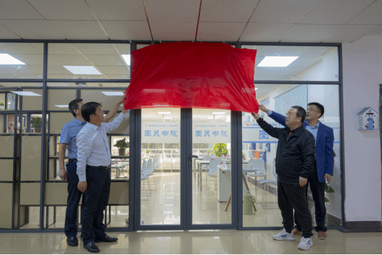 韩高军、图书馆以及计算机学院领导为图灵书院阅读空间揭牌,师生代表们共同见证了揭牌仪式并参观图灵书院。