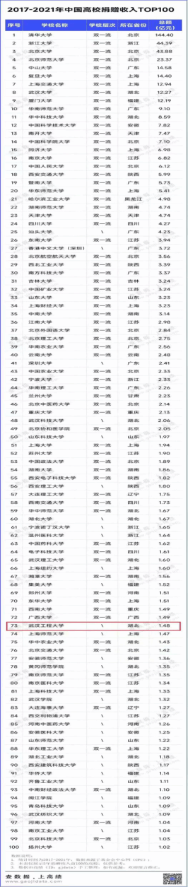 本网讯(通讯员 毕灵敏)“双一流”建设以来,高校的捐赠收入越来越受到关注。2023年8月,根据基金会中心网(CFC)官方发布的最新数据,对中国内地高校5年(2017年-2021年)社会捐赠总收入进行了统计,尊龙凯时人生就是博教育发展基金会接受捐赠进入中国高校百强榜单,位居中国高校捐赠收入排名第73位,省属高校排名靠前。