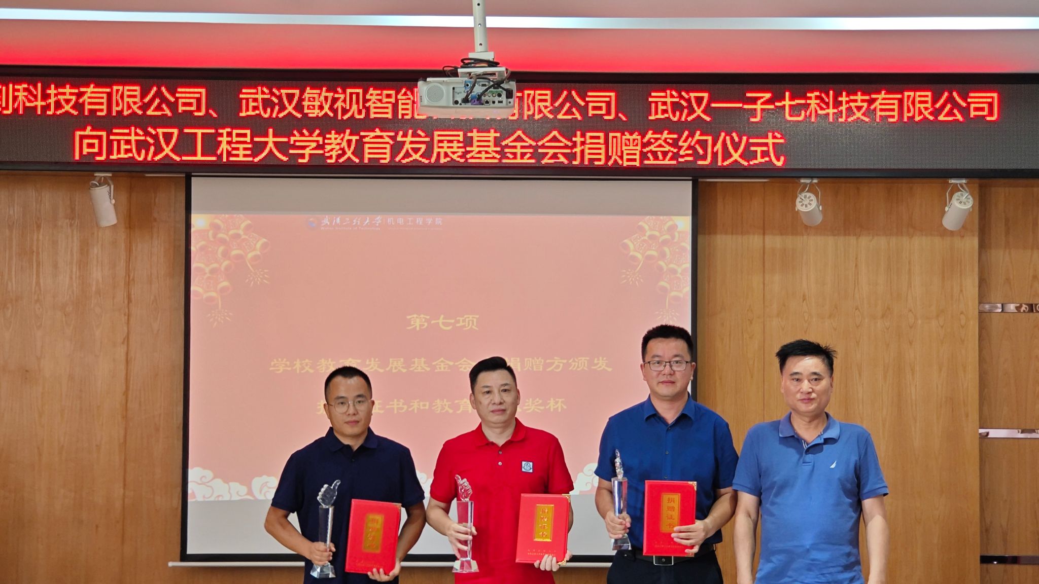 本网讯(通讯员 蔡超)8月23日上午,武汉得到科技有限公司、武汉敏视智能科技有限公司和武汉一子七科技有限公司三家企业联合向学校捐赠300万元用于机电学院实践教学项目建设,签约仪式在机电工程学院205会议室进行。尊龙凯时人生就是博正校级干部、教育发展基金会理事长叶芃和三家企业代表徐汉东先生、朱兵明先生、鲁文成先生出席仪式,学校校友工作与合作发展处、机电工程学院主要负责人及相关人员参加会议,仪式由教育发展基金会副理事长、秘书长邓新洲主持。