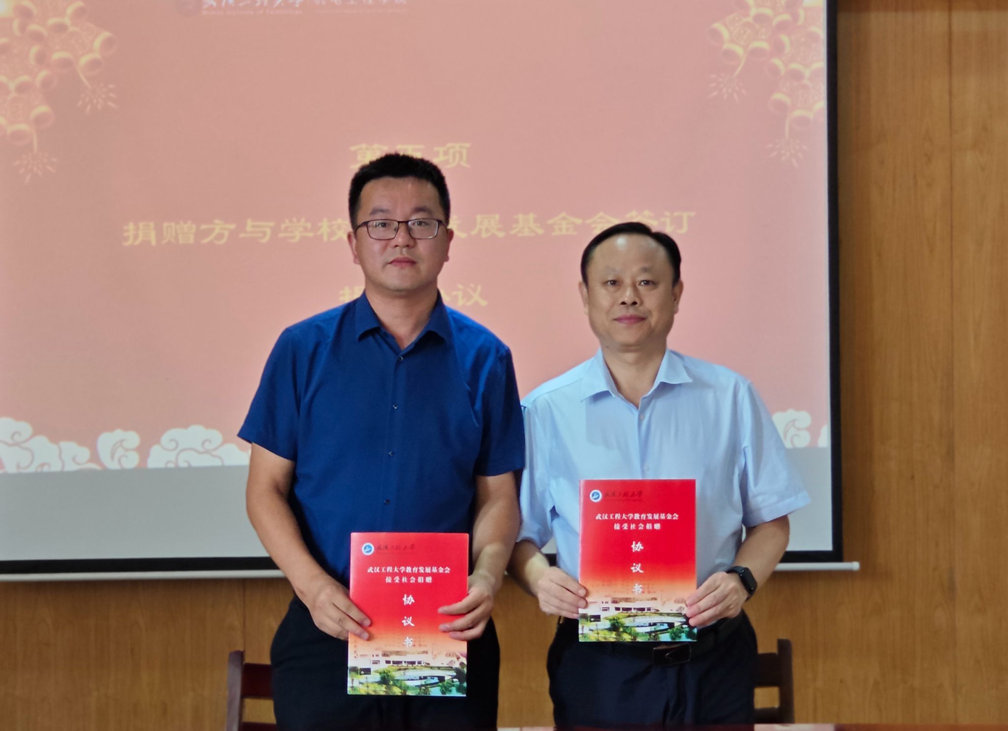 在与会人员的见证下,基金会秘书长邓新洲代表学校教育发展基金会与三家企业代表签订了捐赠协议书。
