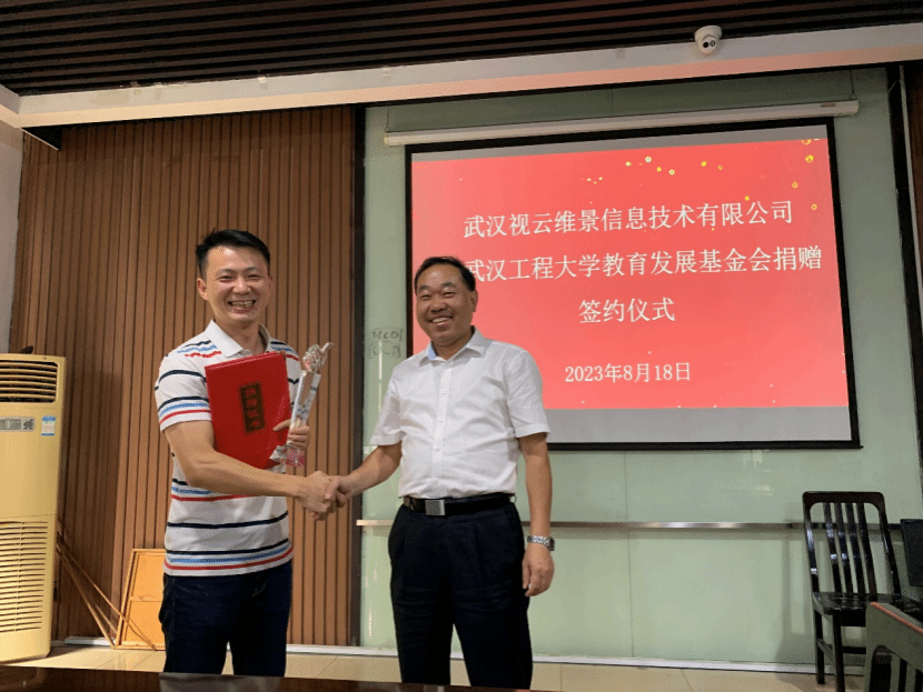 李志旭从历史沿革、人才培养、科学研究、学科建设、服务社会等方面介绍了学校的基本情况。他指出,学校的发展离不开社会各界长期以来的关注与关爱,武汉视云维景信息技术有限公司的此次捐赠善举必将促进学院人才培养、实习实训、创新创业等方面的大力发展,双方要按照协议约定履行义务,将爱心捐赠落到实处,实现社会资源和学校办学的互动、互补、合作、共赢。