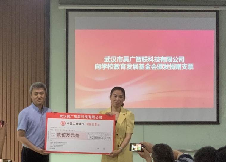 叶芃代表学校对武汉昊广智联科技有限公司董事长陈天来先生的慷慨捐赠表示感谢。他在致辞时强调,学校和学院的发展和进步离不开社会各界的关爱和帮助。希望双方能够加强校企合作,积极探索产学研结合的新方向和实施路径,期待校企合作之花盛开,结出更多丰硕成果,达到相互促进、共同发展的目的,实现合作共赢。