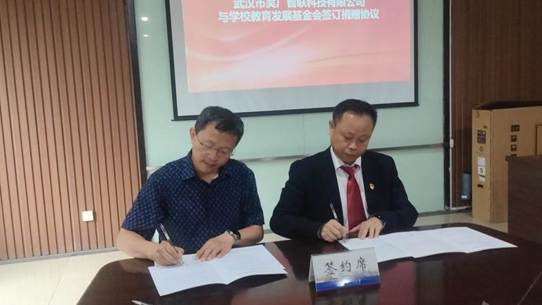 计算机学院党委书记张炜与董事长陈天来签订捐赠资金使用协议书。