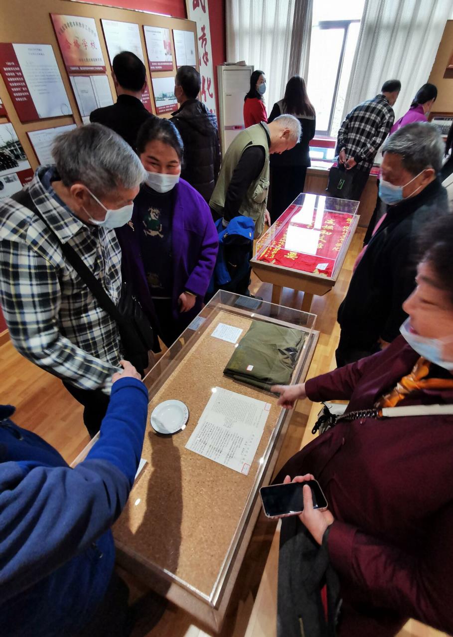捐赠征集仪式结束后,老同志们来到位于7楼的实物陈列室,由张文婷全程结合展示内容进行了服务讲解。大家感慨学校发展至今实属不易,并纷纷表达了对学校深深的祝福。