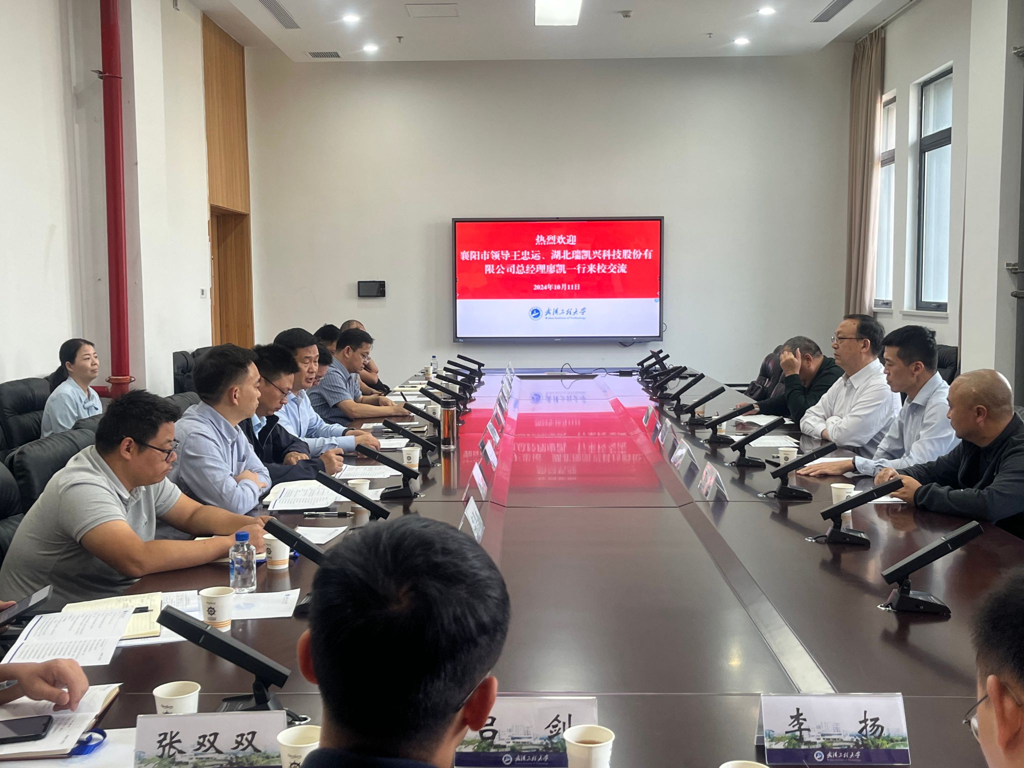 本网讯(通讯员 梅军)10月11日下午,湖北瑞凯兴科技股份有限公司总经理廖凯一行5人来到我校,开了一场富有成效的调研交流活动。校党委常委、副校长朱青林主持会议并致辞。
