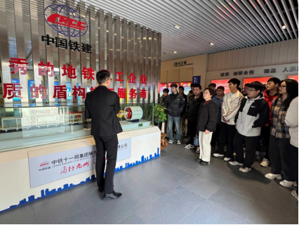 在城轨公司总部,师生团队依次参观企业文化展厅与职工文体中心。通过"历史沿革墙""精品工程沙盘"等特色展陈,系统了解企业从初创到行业领军者的跨越式发展历程,研习企业重点标志性工程的技术突破。在武汉重型装备有限公司(十一局盾构分公司),三台直径6-8米的盾构机组装体赫然矗立,工业美学的视觉冲击令人震撼。盾构制造总厂张厂长现场解析设备构造原理,从刀盘驱动系统到管片拼装技术,专业讲解辅以3D动态演示,使书本知识跃然眼前。仿真培训室的人机交互系统、生产指挥中心的智慧管理平台,全景展现现代装备制造的数字化变革。重装公司党委书记周树清在“盾构隧道智能建造技术与装备”专题报告中,为同学们构建起智能施工技术的认知框架。