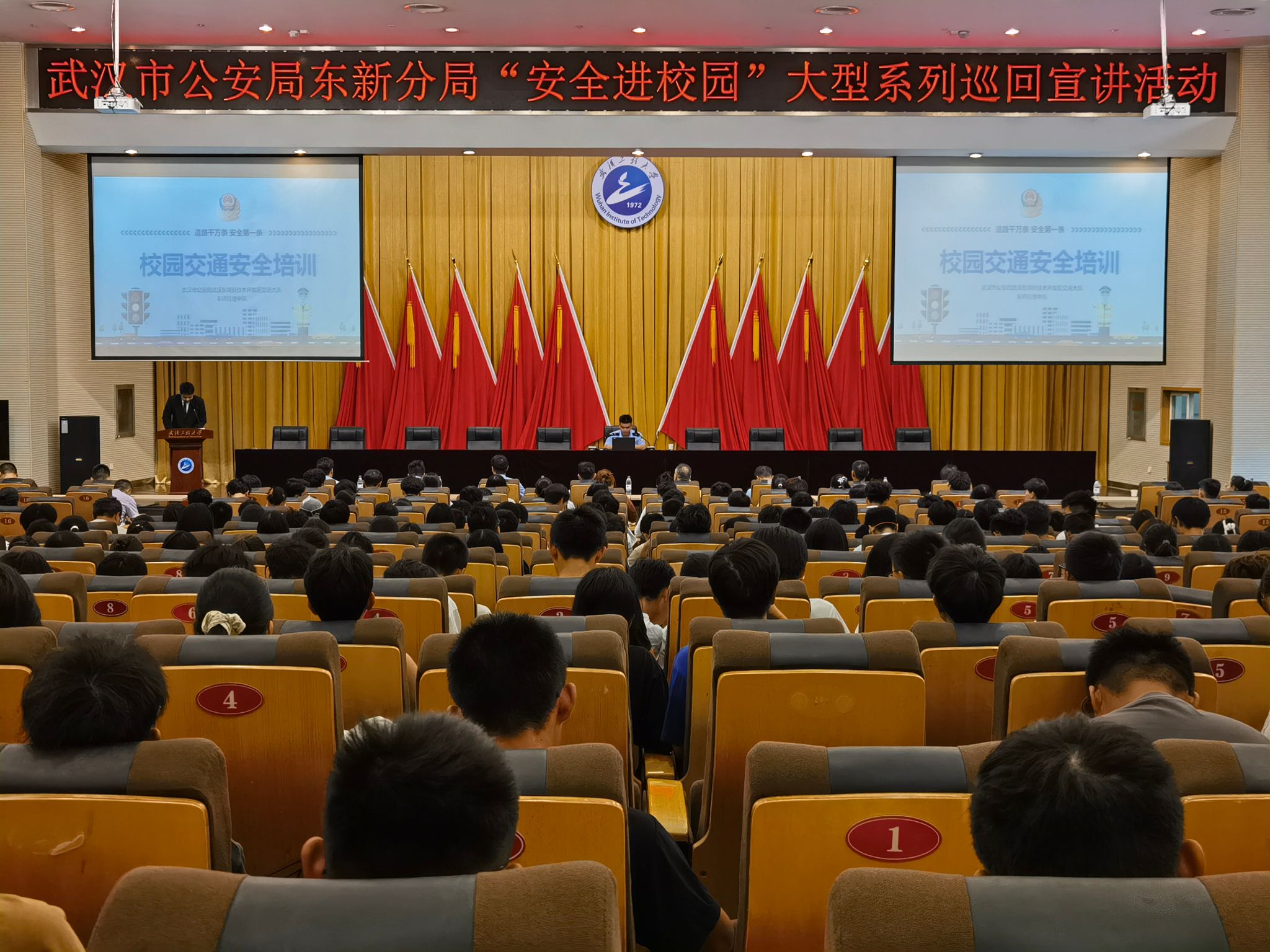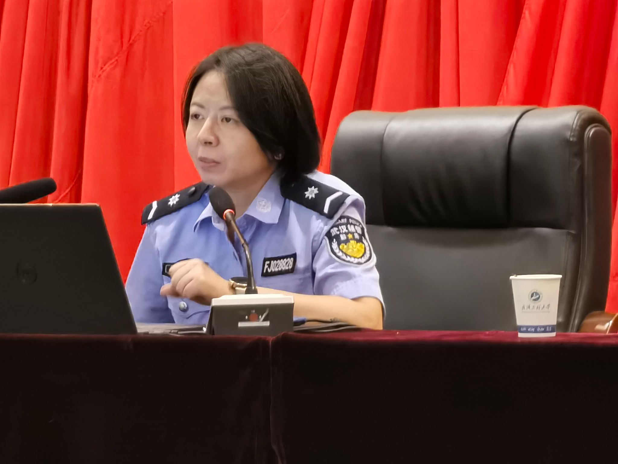 本网讯(通讯员 段淞 瞿登)9月27日下午,由学工部、研工部、保卫部联合举办的“警校同心,共筑安全”大型系列巡回宣讲活动在四教多功能报告厅成功举办。活动旨在着力提升师生防范电信网络诈骗能力和全面掌握交通安全出行、了解禁毒知识和消防知识,东湖新技术开发区公安分局反恐(国保)大队队长高飞、副队长孙军、业务骨干刘晓琦警官、五位授课教官以及400余名师生代表参加了活动。