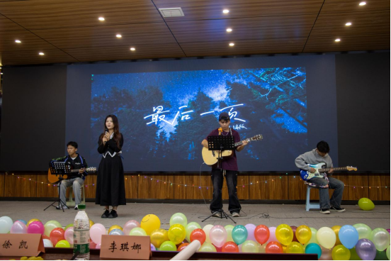 伴随着学工办辅导员演唱的节目《遇见》,迎新晚会圆满落下帷幕。精心编排的节目和风格多变的舞台,凝聚了台前幕后全体人员的付出,也是学院美育工作成效的充分展现。