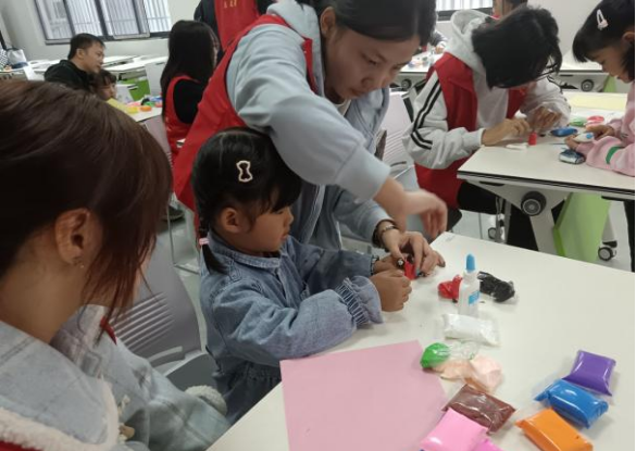 随后,志愿者与小朋友们一起制作黏土手工画,一幅幅活灵活现的画作在一片融洽的欢声笑语中呈现出来。小朋友们看着自己的作品露出了满意的笑容,并和志愿者合影留念。消防活动结束后,志愿者们与社区工作人员共同清扫会场卫生,展现了红细胞志愿服务队志愿者新青年的良好精神面貌。