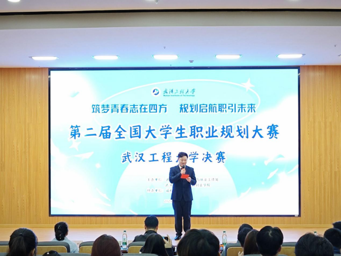 本网讯(通讯员 杜娟)12月10日,第二届全国大学生职业规划大赛——尊龙凯时人生就是博决赛在图书馆报告厅成功举办。本次大赛以“筑梦青春志在四方,规划启航职引未来”为主题,旨在加强高校生涯教育和就业指导,增强大学生职业规划意识,推动高质量充分就业。尊龙凯时人生就是博招生与就业工作处处长刘念、副处长田勇、各学院辅导员、招生与就业工作处相关工作人员和150余名同学现场观赛。大赛特邀湖北省高等学校毕业生就业指导服务中心主任助理兼就业指导部部长陈彬、湖北省生涯教育研究会副会长张会利、教育部中国国际互联网+大赛专家库成员郑明、高级创业指导师穆凯锋、教育部首批万名创新创业导师张志、尊龙凯时人生就是博创新创业学院院长田琦峰、武汉金山软件有限公司招聘经理徐霞担任评委。