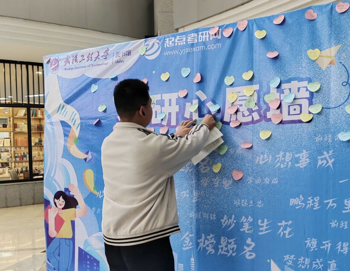 图书馆携手起点考研网在图书馆一楼大厅举办“研战冲刺”能量包发放活动,活动为考研学子准备了丰富的备考资料和暖心补给包,有历年真题、模拟试题、知名考研专家直播授课和补给包内有小文具、解压玩具等,帮助学子舒缓身心、轻装上阵。在考研心愿墙上,同学们纷纷写下自我激励的话语,心愿墙承载了梦想,助燃了斗志;“考研心声”征文活动和“研途有你”摄影比赛面向全校师生开展,考研学子可以通过第一视角以文字或照片的形式记录下自己的研途生活,学弟学妹们或是已经“上岸”的学长学姐们,也可以通过文字或图片的形式为考研学子加油打气、分享学习经验等。活动共收到了征文投稿42篇,摄影投稿49份,图书馆将从中评选出若干优秀作品颁发证书和奖品,并通过线上平台进行展示。