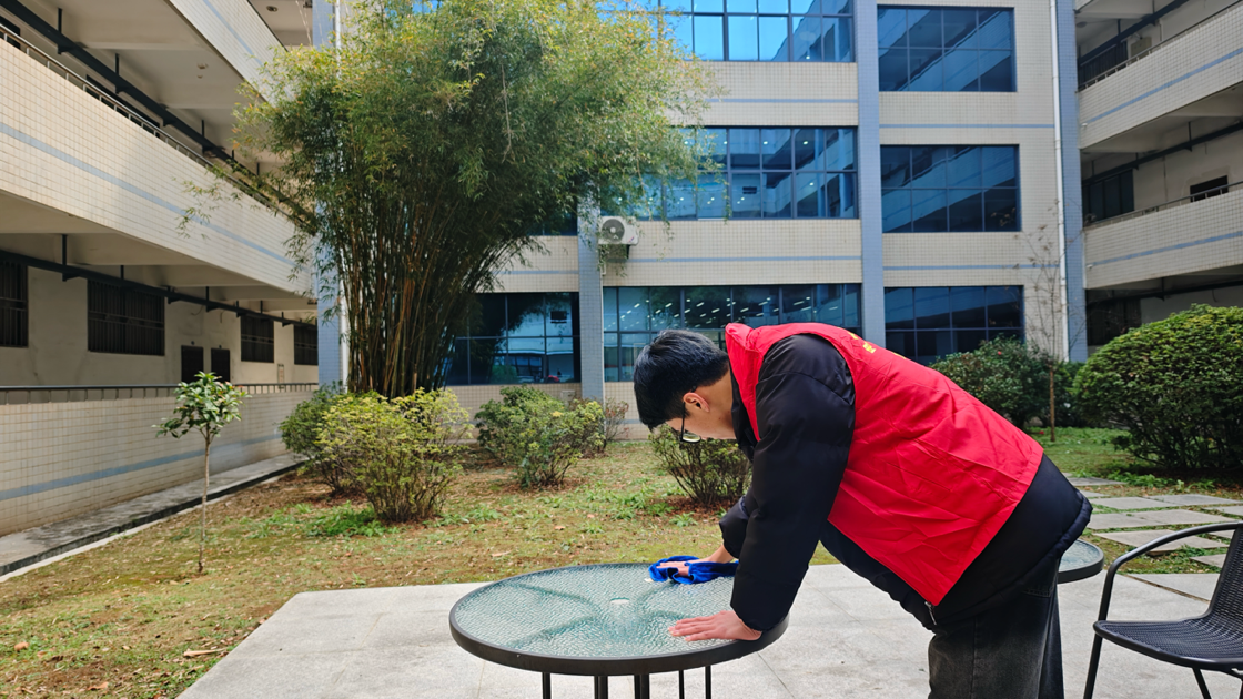 3月5日上午,在第62个学雷锋活动日到来之际,学院志愿者分别对学院的教学楼、实验室、连廊等公共区域进行了全面清扫。志愿者分工明确,擦拭桌椅、清理地面、整理实验器材,经过细致清洁,公共区域面貌焕然一新。