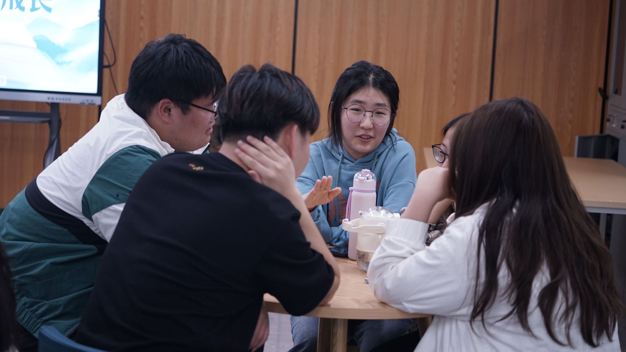 在跨学科对话环节,小组成员积极交流,实现思维破壁。小组代表们分享推荐的《我们仨》《菊与刀》《阿勒泰的角落》《自卑与超越》四本书横跨文学、心理学等多个不同的领域,为在场师生的阅读清单提供兼具思想性与可读性的多元化选择。