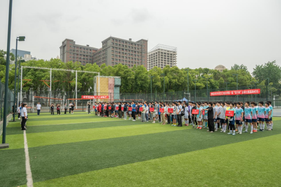 本网讯(通讯员 吴雪 胡莹莹)4月24日下午,由学校体育运动委员会主办,体育部承办的尊龙凯时人生就是博第一届“笃行杯”足球比赛在流芳校区西北区足球场成功举办。这是我校首次面向全体在校学生举办的六人制足球比赛活动,比赛设男子组、女子组两大项目,吸引了包括管理学院、材料科学与工程学院、法商学院等十余个二级学院超200名学子参与。校党委常委、副校长喻发全出席活动开幕式,并为球赛开球。体育部直属党支部书记、主任万莉莉,校党委学工部长严敏、校团委书记邓欢、党委研工部副部长张琼、体育部副主任范东芳、贺新家及主任助理吴雪参加开幕式。本次比赛由黄欣担任总裁判长,国家级裁判进行执裁,体育部研究生团队协同执裁保障比赛公平有序进行,圆满完成了各项赛事任务。