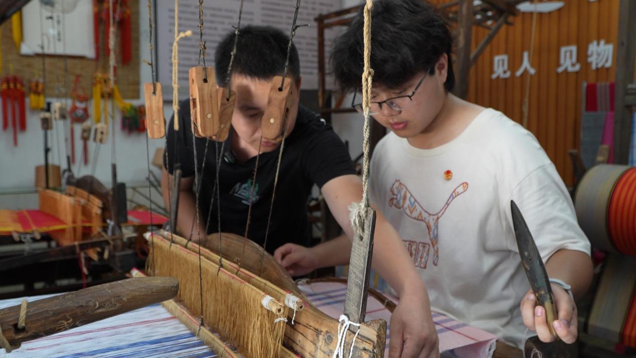 “化之翼”社会实践团成员顺利抵达黄麻起义和鄂豫皖苏区纪念园。随后走进“红安县非物质文化遗产保护传承基地”,与红安县非物质文化遗产大布纺织技艺传承人黄珍兰、陶文成母子进行深入交流。陶文成这样说道:“传承非遗就是要甘坐冷板凳,现在年轻人愿意来了解非遗大布,但是普遍‘三分钟热度’,希望当今青年一代要培养耐得住寂寞的品格。”