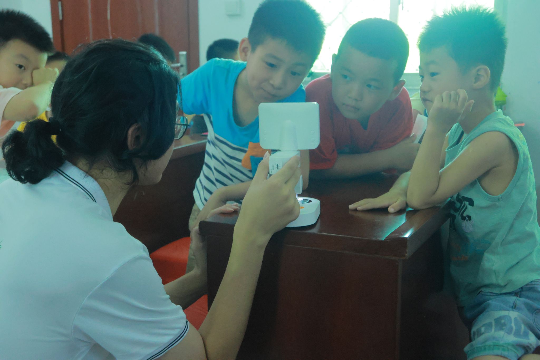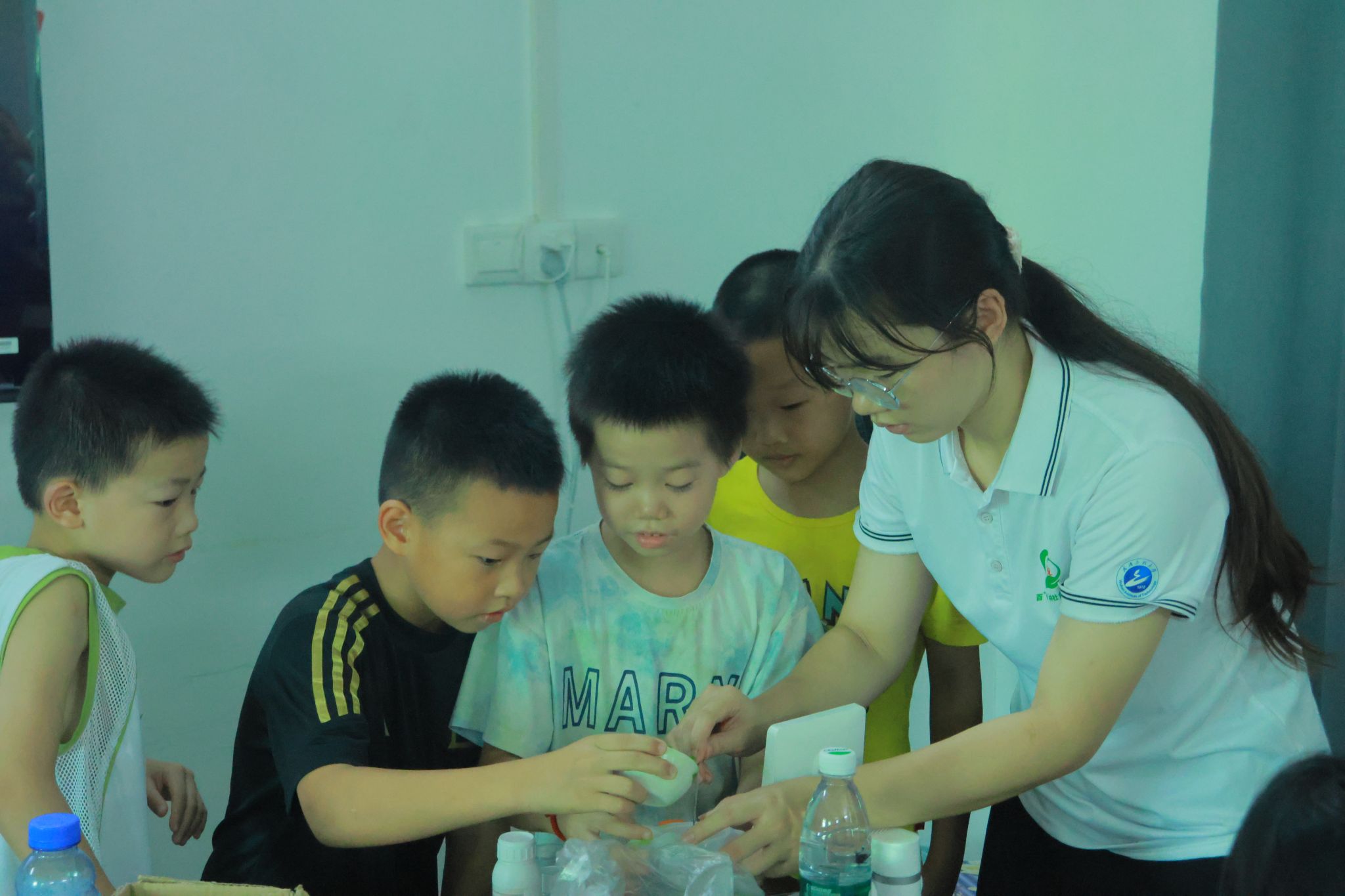 “百‘化’林光路童行实践团将光电显微镜带到了课堂,将奇妙的微观世界搬到了孩子们眼前。在志愿者手把手的指导下,孩子们聚精会神,看到微小的蚂蚁标本清晰地呈现在电子屏幕上,惊呼声与赞叹声此起彼伏。