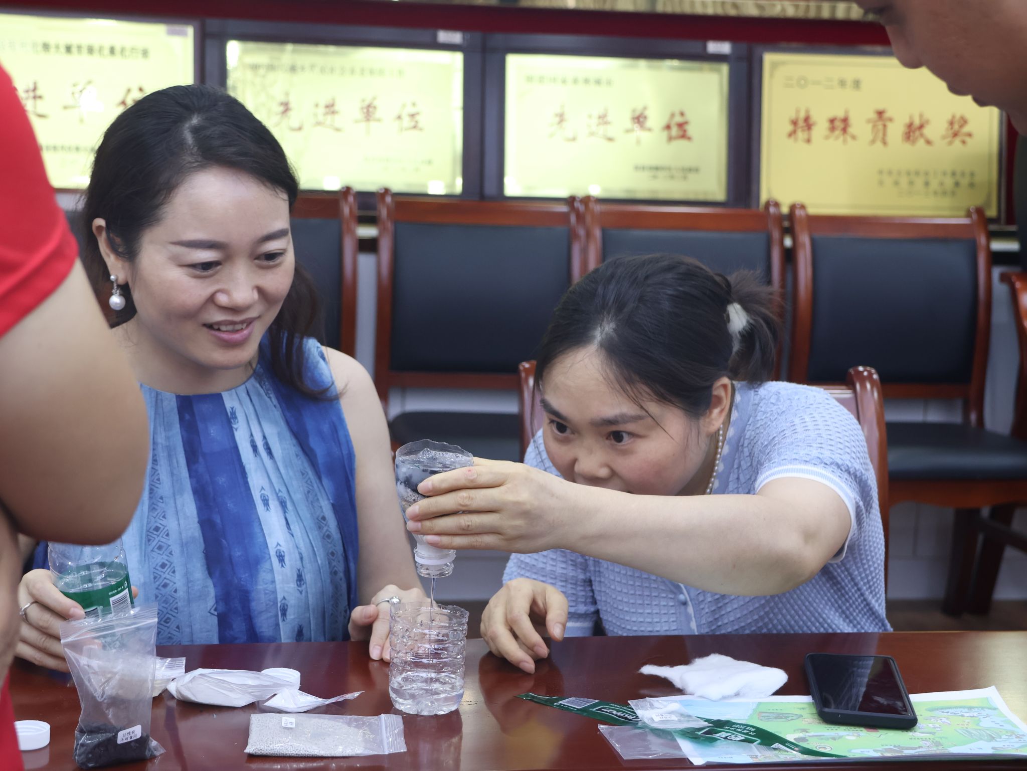 “砂石拦截大颗粒,活性炭吸附小杂质,比比哪组滤出的水最清澈!”孩子们麻利地设计滤柱,小心翼翼倒入浑浊的污水;一旁的家长专注地调试着自己的过滤装置。“哇!我们组的更清!”“快看这边的效果!”热烈的讨论声充满了整个活动现场。家长深有感触地谈到,这次活动不仅增进了与孩子之间的感情,还看到了孩子在科学探索方面的潜力,作为家长,应当更多地参与孩子的成长过程,给予他们支持与陪伴。
