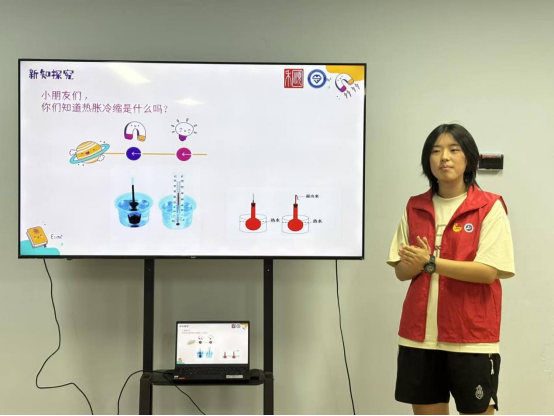 活动现场,志愿者以一段趣味十足的白露科普小视频拉开活动序幕。视频一结束,志愿者便抛出“白露节气名字的由来”等问题,孩子们立刻兴奋地举起小手,你一言我一语地抢答,清脆的回答声让现场充满活力。待互动环节结束,志愿者通过热胀冷缩原理,正式开启了“自制温度计”课堂,用直观的实验操作让抽象的科学知识变得易懂,孩子们专注的目光紧紧追随着志愿者的动作,满是对接下来实验的期待。