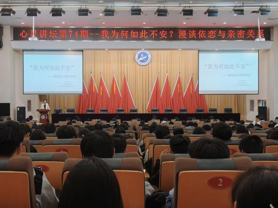 本网讯(通讯员 鲁伊思)10月30日下午,由校学生处、心理健康教育中心主办,电气信息学院承办的第74期心灵讲坛在流芳校区四教多功能报告厅举行。武汉商贸职业学院李芳副教授应邀开展题为“‘我为何如此不安’——漫谈依恋与亲密关系”的专题讲座,电气信息学院2025级全体同学参加讲座。