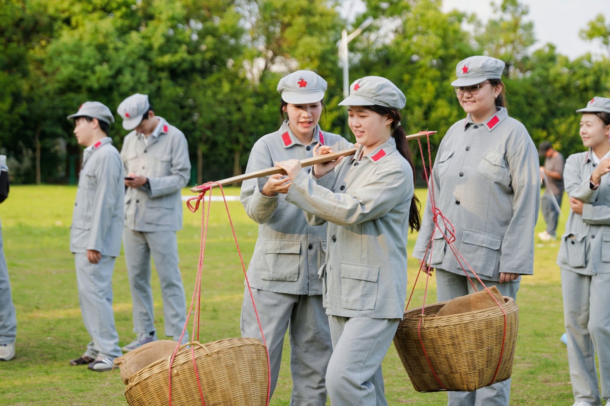 随后,在素质拓展基地,师生骨干们一同体验“重走挑粮小道”“模拟手榴弹投掷”等项目,重温革命斗争时期先辈们的生活情景,感受革命先烈们为民族独立和人民解放所作出的艰辛努力和奉献。学生社团管理部主席团成员、校十佳共青团干付子奥同学说:“走的只是小道小段,却已经尝到艰难,可以想象当年革命先辈们挑粮上山,是何等的艰辛,我们要珍惜当下,努力学习,刻苦奋斗,为祖国的繁荣昌盛贡献自己的一份力量。”