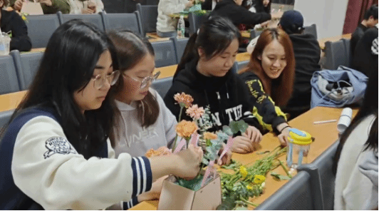 本网讯(通讯员 芦梦荻)4月7日晚,由学生工作处、心理健康中心主办,材料科学与工程学院、“小溪流”辅导员工作室承办的“‘花’点时间 ‘植’愈我心”插花实践活动在流芳校区L2107教室顺利举行。本次活动邀请华中农业大学园艺疗法项目兼职讲师杨雪作为主讲老师,心理教育中心主任徐迪迪、各学院辅导员代表及80余名学生参与本次活动。