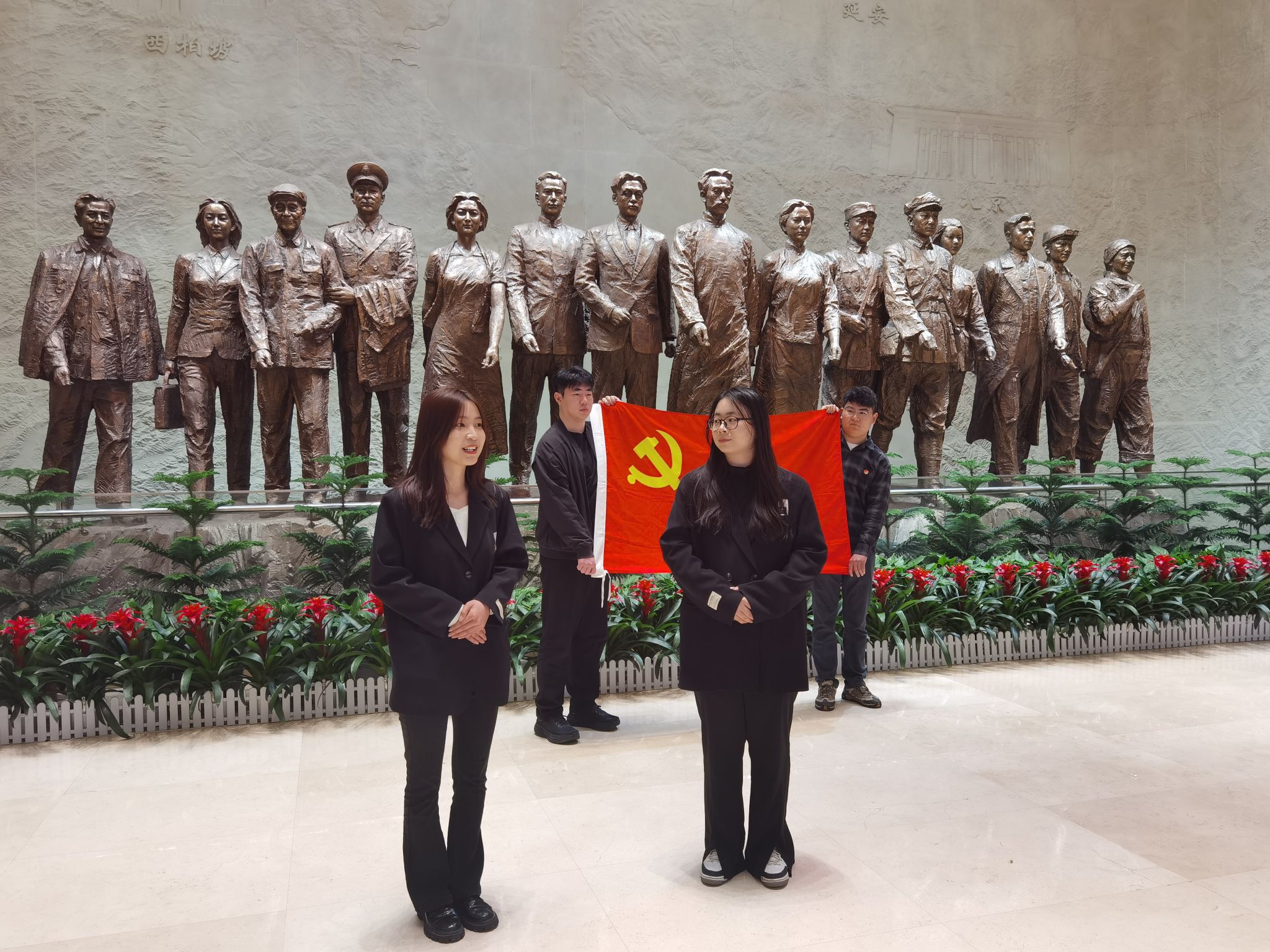 研究生团学骨干们在身临其境中心灵得到洗礼、思想得到升华,深刻读懂大国崛起的艰辛,体悟今日幸福的来之不易。怀揣着对革命先烈的深切哀思之情,全体团学骨干面对英雄雕像列队肃立、默哀沉思、鞠躬致敬、文明祭扫,通过扫描场馆内的二维码向先烈们敬献鲜花。