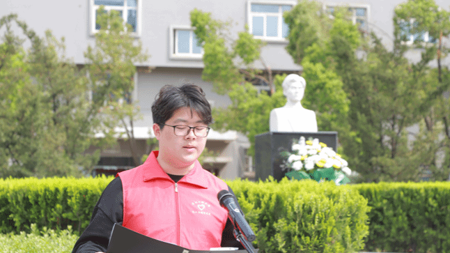 学生代表宋澜馨分享自己与许志伟志愿服务队的故事,倡议大家从前辈先烈的事迹中补足精神之钙,从党的奋斗征程中铸牢思想之基,传承许志伟精神,以实际行动为建设中国式现代化贡献青春力量。在场师生依次向许志伟雕像献花,表达对许志伟的深切缅怀和崇高敬意。