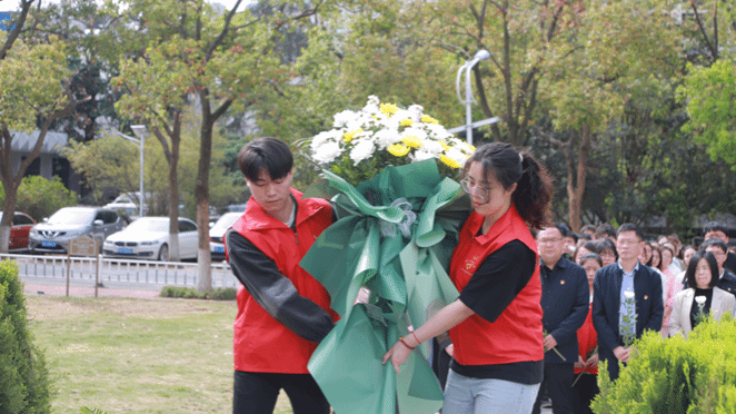 本网讯(通讯员 汤曦 刘悦薇)4月1日上午,学校在武昌校区许志伟广场举行“缅怀英烈寄哀思,薪火相传担使命,踔厉奋发新征程”清明祭扫活动。校党委学工部、武装部部长吕容涛,化工与制药学院党委书记汪铁林,党委宣传部、党委研工部、校团委相关负责人,化工与制药学院,土木工程与建筑学院,材料科学与工程学院,兴发矿业学院、资源与安全工程学院党委副书记出席活动。活动由化工与制药学院副书记周丹主持。