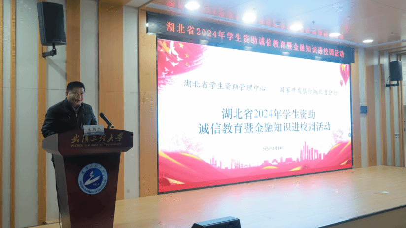 本网讯(通讯员 曾峥)3月14日下午,湖北省2024年学生资助诚信教育暨金融知识进校园活动在我校举行。学校党委副书记李志旭、国家开发银行湖北省分行客户七处副处长武昭明、国家开发银行湖北省分行团委书记徐倩倩等领导嘉宾出席活动。会议由湖北省学生资助管理中心副主任黄勇主持。
