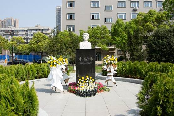 全体师生代表齐聚许志伟广场,怀着崇高的敬意、沉重的心情缅怀英雄许志伟。仪式开始,由许志伟党员示范班、许志伟志愿服务队学生代表为烈士敬献花篮并深深鞠躬,致以许志伟学长崇高的敬意。
