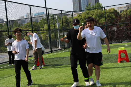 在西北区体育场,主持人带领同学们齐唱团歌,让大家尽快融入到团会的氛围中来。各部门负责人组织参赛同学进入游戏区,开展“心心相印”“爆破气球”“翻滚吧球球”“夹弹飞奔”“摸石头过河”等多项游戏,同学们积极参与,现场气氛十分活跃。
