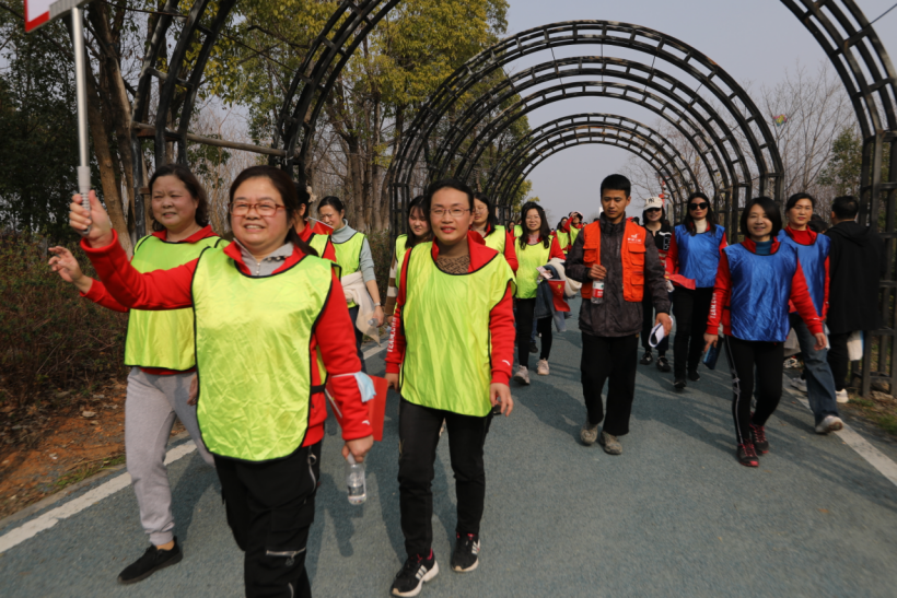 郑丹凤宣布活动开始,经过简单的热身活动,6支队伍通过抢答党的二十大知识的形式依次出发,开启徒步之旅,大家迈着快乐的步伐,行走在黄龙山麓,在感受自然风光的同时,享受运动带来的惬意舒适。