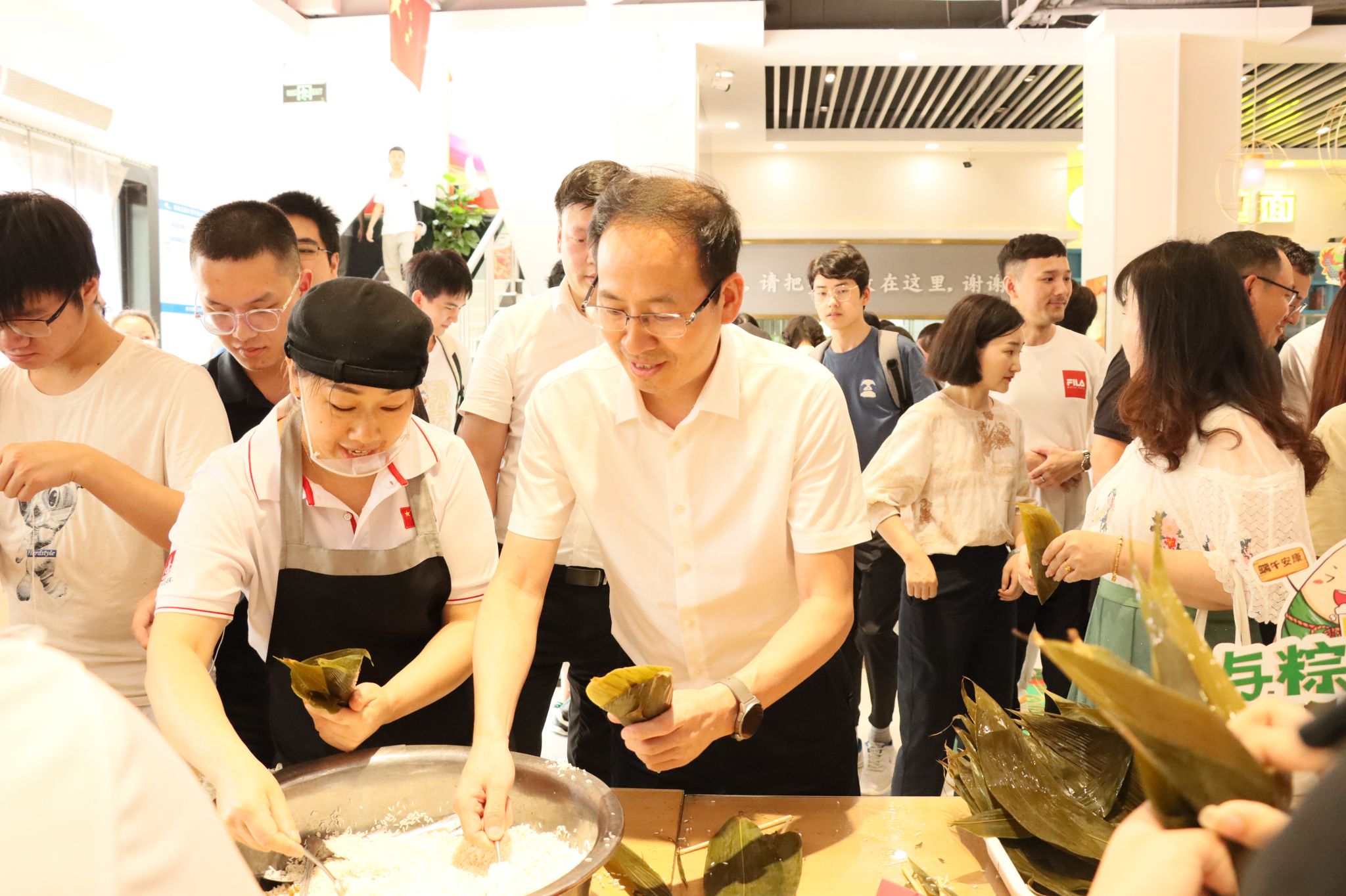 本网讯(通讯员 梁春晴 范鑫)“端午临中夏,时清日复长。”6月20日上午,为进一步弘扬中华优秀传统文化,丰富学生校园文化生活,提升学生劳动素养,学校在流芳校区第三食堂举行“品民俗文化 过粽情端午”主题活动。校党委副书记李志旭、校党委常委、副校长马小龙,学工部部长吕容涛、后勤保障处副处长舒滔以及各学院师生代表参加了此次活动。