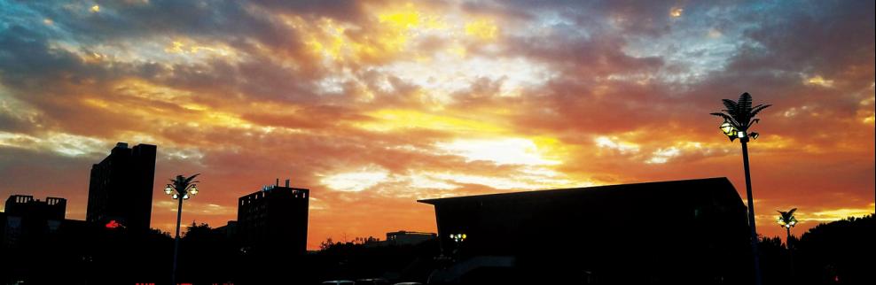 火烧云下的校园