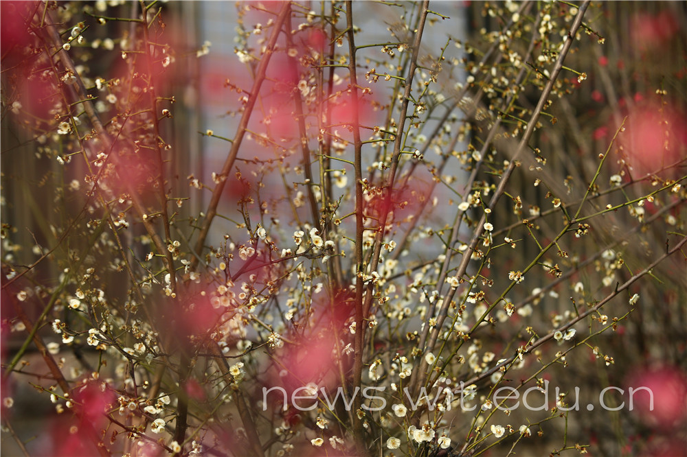 “墙角数枝梅,凌寒独自开,遥知不是雪,为有暗香来”,新学期的到来,走进工大校园,一棵棵梅树映入眼帘,细细轻嗅,一股幽香悠悠袭来,馨香阵阵,淡雅清新,令人感到心旷神怡……