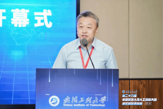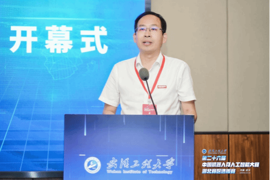 朴松昊代表国赛组委会介绍大赛整体情况,对我校承办本次比赛所做的各项工作给予充分肯定,同时表示将加大对湖北省赛区比赛的投入和指导,打造湖北省人工智能学科竞赛品牌。