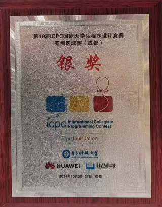 本网讯(通讯员 王杨晶 陈灯)10月27日,第49届ICPC国际大学生程序设计竞赛亚洲区域赛(成都)在电子科技大学举行。我校ACM协会派出的计算机科学与工程学院(人工智能学院)王尔强、钱嘉豪、郭翰良同学组成的“深藏blue 2.0”队在陈灯老师的指导下获得银奖,在所有参赛队中排名第88位,学校排名第57位。