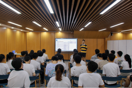 本次分享会由“敢敢小分队”的队长林岩松主讲,林岩松从赛前准备、答辩技巧、团队组建等方面作了经验分享:在赛前准备工作方面,要多看文献、多听讲座、多渠道交流,确保项目选题紧跟社会热点,剖析市场痛点,服务产业需求;在答辩技巧上,要思路清晰、逻辑严谨地阐明项目的社会可行性和技术可行性,结合生活化的场景展现项目的核心竞争力;在团队组建上,要根据团队成员能力,分工合作,优势互补,定期召开小组会议,互相沟通,互相交流,互相分享,碰撞思维火花。