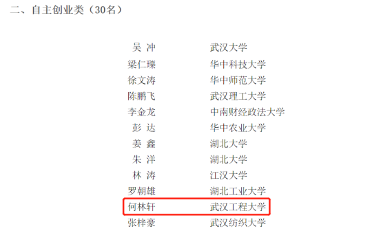 本网讯(通讯员 黄晶晶)近日,湖北省教育厅第八届“长江学子”大学生就业创业人物事迹征集活动结果公布,全省共有150名大学生入选,我院2020届毕业生何林轩从众多参选者中脱颖而出,入选自主创业类“长江学子”荣誉称号。