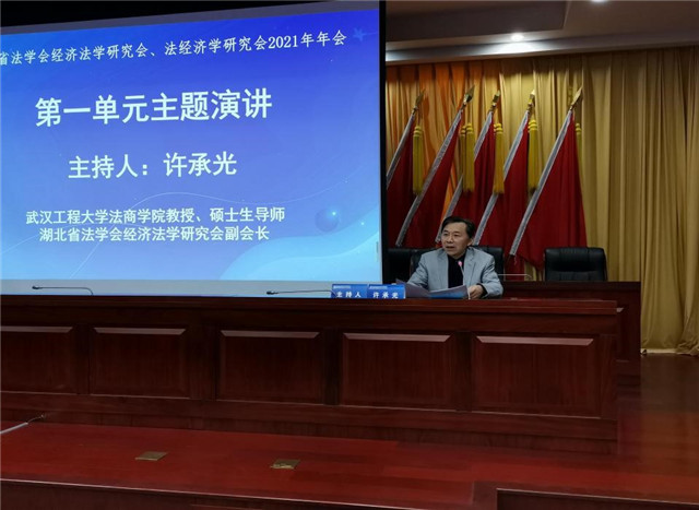 本网讯(通讯员 朱昭臣)11月20日上午,湖北省法学会经济法学研究会、法经济学研究会2021年年会在武汉市武昌区中铁大厦召开。中铁十一局集团党委副书记谢敬平,湖北省法学会秘书长王龙,湖北省高级人民法院副院长周佳念,武汉市仲裁委办党组书记彭国元,湖北省国资委政策法规处副处长刘恒等出席会议。学校法商学院许承光教授主持本届参会论文的主题演讲环节。法商学院研究生罗艺源撰写论文荣获该年会论文一等奖。