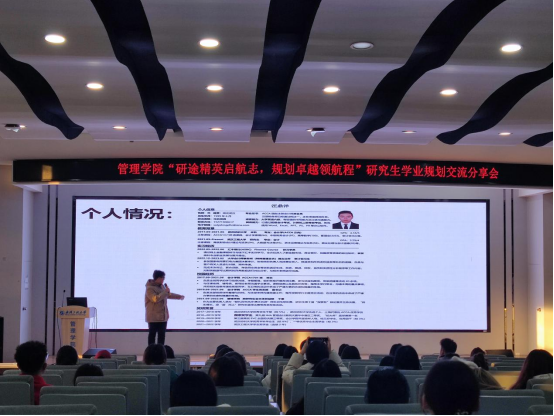 本网讯(通讯员 伍丹丹 马秀秀 张依婷)12月8日下午,一场以“研途精英启航志,规划卓越领航程”为主题的研究生学业规划交流分享会在学校文科楼报告厅隆重举行,来自不同专业的优秀研究生代表王媛玲、牛佳草和汪鼎洋依次分享了他们在学术科研、生活感悟以及职业规划方面的心得与体会。研究生辅导员及100余名研究生参加了本次活动。此次活动旨在通过学长学姐们的经验分享和榜样力量,为低年级研究生的学业规划、科研竞赛及职业规划提供借鉴参考。
