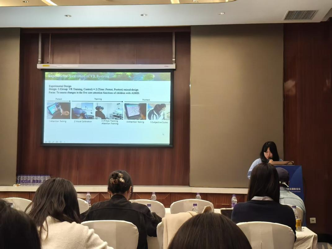 郭宏运的报告《Gaze-based virtual reality attention training for children with ADHD: A randomized controlled feasibility study》从心理学与交互设计的融合视角出发,展示了基于眼动控制的虚拟现实游戏在ADHD儿童心理健康干预中的创新实践。
