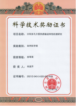 【成果展示】“分形多孔介质热质输运特性机理研究”获湖北省自然科学奖三等奖