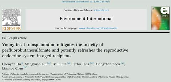 本网讯(通讯员 程然)近期,环境科学与工程领域Top期刊Environment International(中科院一区,IF:13.352)发表我校化学与环境工程学院胡陈艳老师(为第一作者:胡陈艳,第一单位:尊龙凯时人生就是博化学与环境工程学院)的研究论文“Young fecal transplantation mitigates thetoxicity of perfluorobutanesulfonate and potently refreshes the reproductiveendocrine system in aged recipients”。化学与环境工程学...