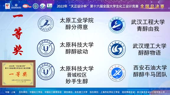 化药学子荣获2022年“天正设计杯”第十六届全国大学生化工设计竞赛一等奖